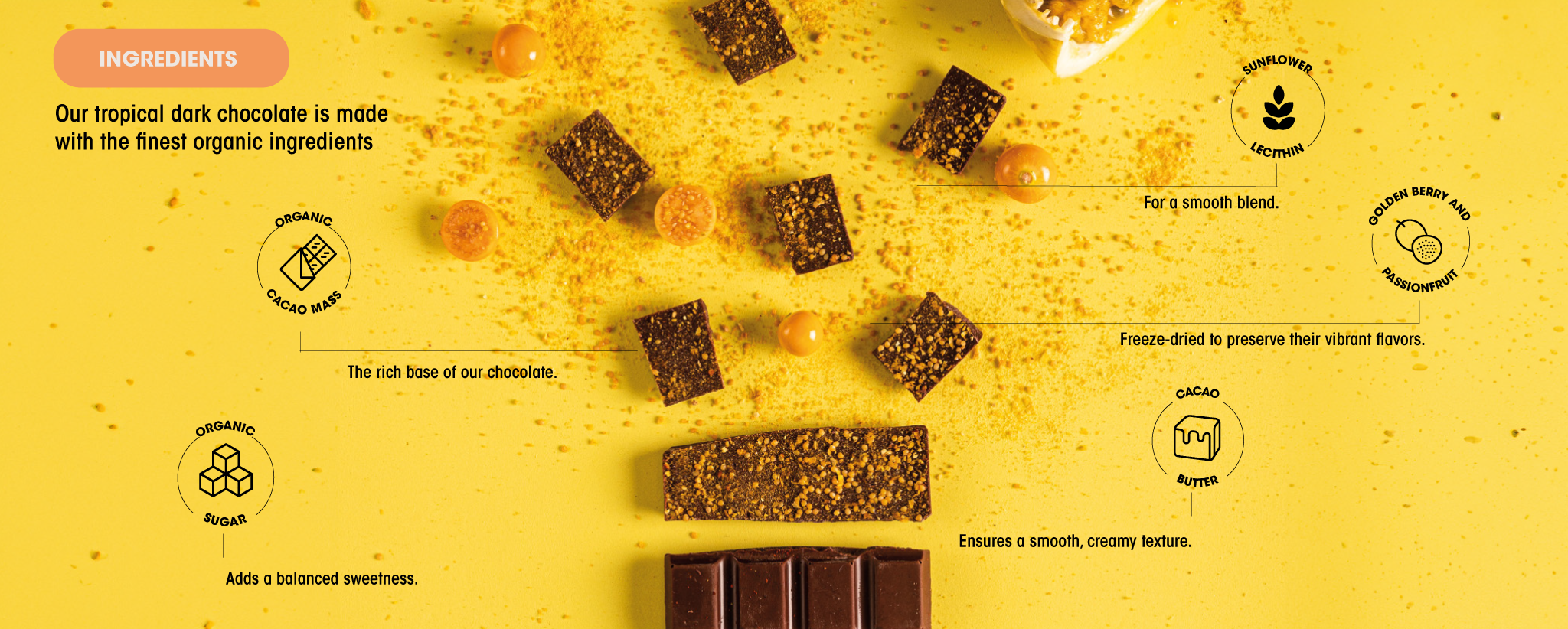 We use freeze-dried golden berries and passionfruit to preserve their vibrant flavors.